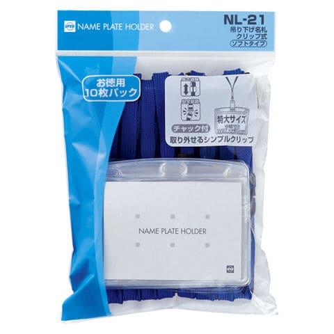 オープン工業 吊り下げ名札 クリップ式 青 横特大 入数:1袋(10枚) NL-21-BU(23783)