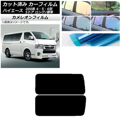 カーフィルム ハイエース 200系 4/5/6型 バン 5ドア ロング/標準 リア 3列目 左右固定窓 アンテナ内蔵 カメレオン 選べる3フィルムカラー AP-WFCM0134-RD2A