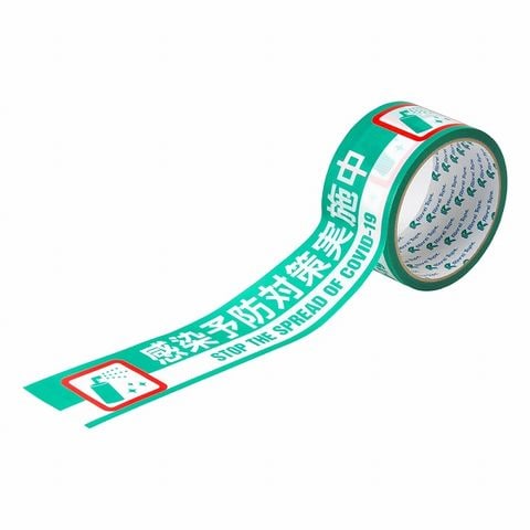 リンレイテープ 2ヶ国語表示印刷PE粘着テープ 【感染予防対策実施中】 #625AT(ZTP0501)
