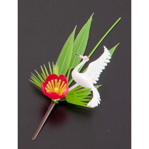 縁起が良いとされる松、竹、梅、鶴をあしらったプラスチック製の造花(料理飾り)です。おせち料理やオードブル、ハレの日(特別な日)などの慶事料理にお使いいただけます。優雅に飛ぶ鶴と紅梅が、お祝いの席を華やかに盛り立てます。