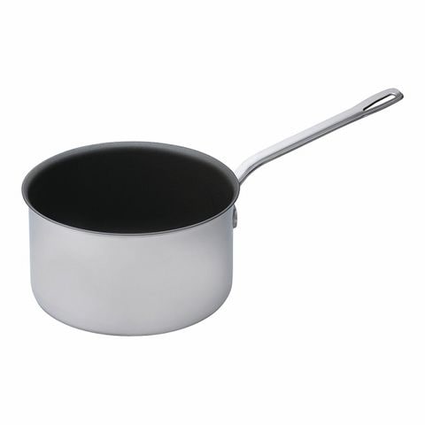 業務用電磁調理器に最適な極厚底単層構造に内面ストロングコート加工でお手入れが簡単。こびり付き易い食材もラクラク洗浄できます。