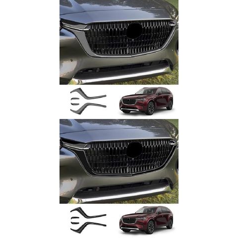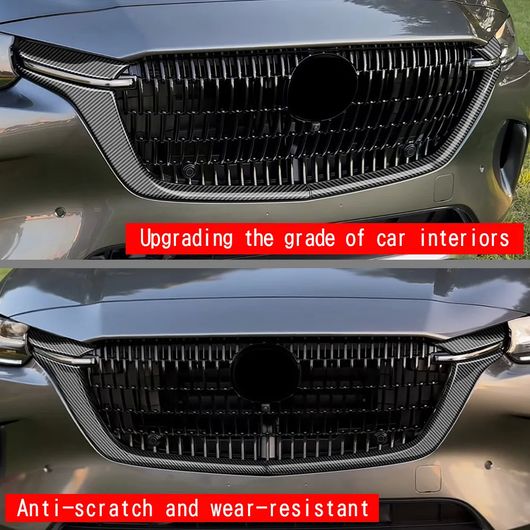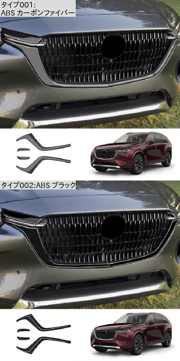 適用: マツダ CX-90 CX90 2024 2025 フロント バンパー 装飾 カバー スタイリング グリル トリム ストリップ グリル プロテクター ABS カーボンファイバー・ABS ブラック SR-AA-0623