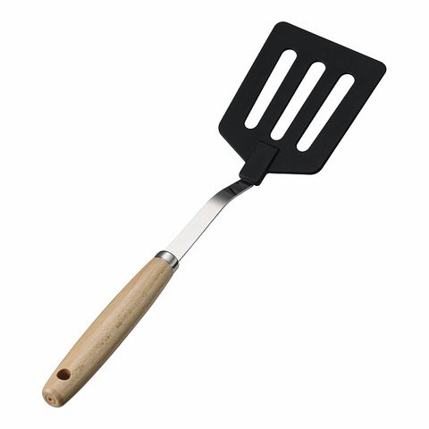 材質:ハンドル/天然木、金属部/18-0ステンレス鋼、樹脂部/66ナイロン(耐熱温度200℃)