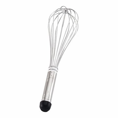 独自の特殊樹脂を注入のため、柄の中に水がはいりにくく衛生的です。円盤状のヘッド部は、ひっかかりがあるためホイップしても、手がすべる心配がありません。特殊加工技術により、柄と線材が固定され、さらに抜けにくい構造になっています。