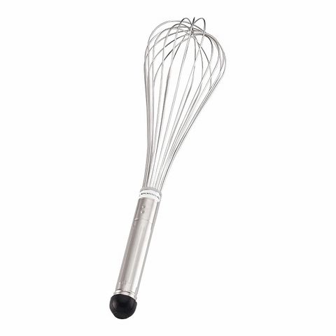 独自の特殊樹脂を注入のため、柄の中に水がはいりにくく衛生的です。円盤状のヘッド部は、ひっかかりがあるためホイップしても、手がすべる心配がありません。特殊加工技術により、柄と線材が固定され、さらに抜けにくい構造になっています。