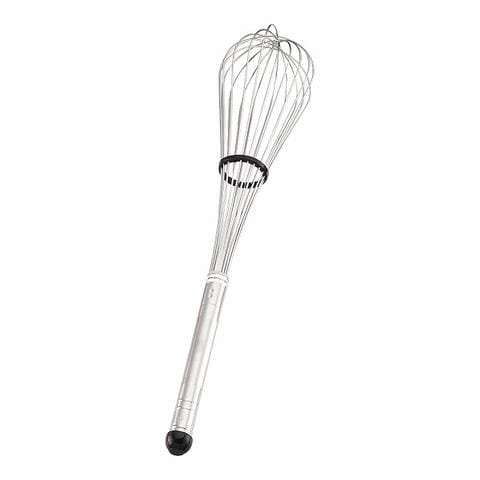 独自の特殊樹脂を注入のため、柄の中に水がはいりにくく衛生的です。円盤状のヘッド部は、ひっかかりがあるためホイップしても、手がすべる心配がありません。特殊加工技術により、柄と線材が固定され、さらに抜けにくい構造になっています。