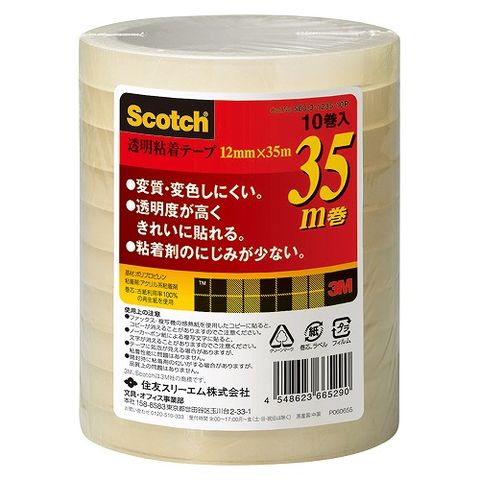 スリーエム(3M) 透明粘着テープ500シリーズ 12mm×35m 入数:1パック(10巻) 500-3-1235-10P(00293)