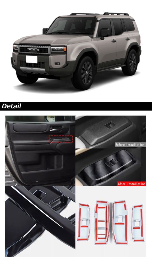 パワーウインドウスイッチカバー トヨタ ランドクルーザー250 250系 2024年04月~ カラー1 ABS樹脂製 入数:1セット(4個) AP-IT3885-COL1