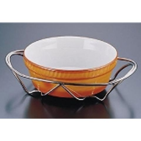 ヨーロッパの伝統と技術が生んだ、プロフェッショナルのための本格派オーブンウェアです。隅々にまで美意識を反映したこのシリーズ。磁味あふれる硬質な陶器との調和を図って、スタンドにはステンレス製のホルダーをセット。ノーブルな銀の光沢が、テーブルに上質でしなやかなエスプリを生み出しています。
