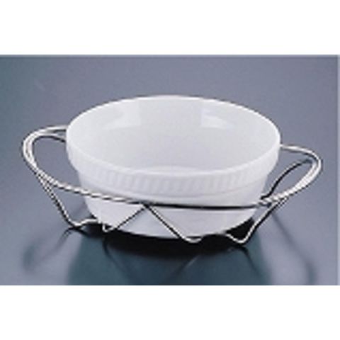 ヨーロッパの伝統と技術が生んだ、プロフェッショナルのための本格派オーブンウェアです。隅々にまで美意識を反映したこのシリーズ。磁味あふれる硬質な陶器との調和を図って、スタンドにはステンレス製のホルダーをセット。ノーブルな銀の光沢が、テーブルに上質でしなやかなエスプリを生み出しています。