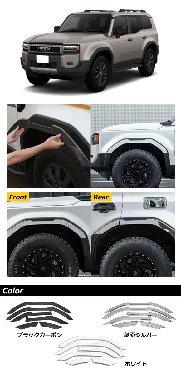オーバーフェンダー トヨタ ランドクルーザー250 250系 2024年04月~ 鏡面シルバー ABS樹脂製 入数:1セット(6個) AP-XT2553-KSIのレビュー