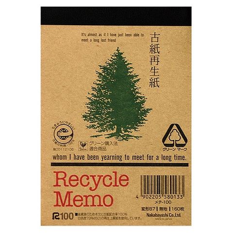 ナカバヤシ(Nakabayashi) 古紙再生紙 メモ帳 リサイクルメモ B7 メテ-100(48434)
