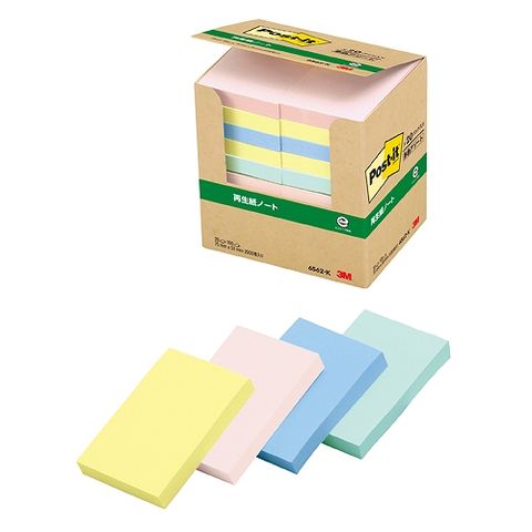 スリーエム(3M) ポストイット ノート 再生紙 多色アソート 75×50mm 入数:1パック(20パッド) 6562-K(71290)