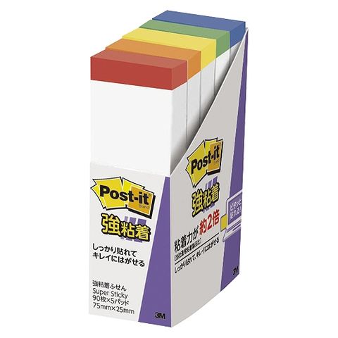 スリーエム(3M) ポストイット 強粘着ふせん 多色アソート 75×25mm 入数:1パック(5パッド) 500SS-R(69230)