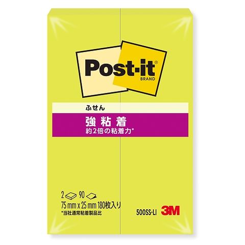 スリーエム(3M) ポストイット 強粘着ふせん アシッドライム 75×25mm 入数:1パック(2パッド) 500SS-LI(69228)