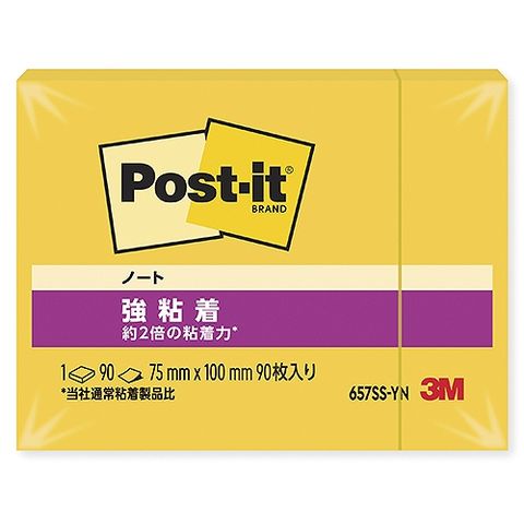 スリーエム(3M) ポストイット 強粘着ノート ビビッドイエロー 75×100mm 657SS-YN(54760)