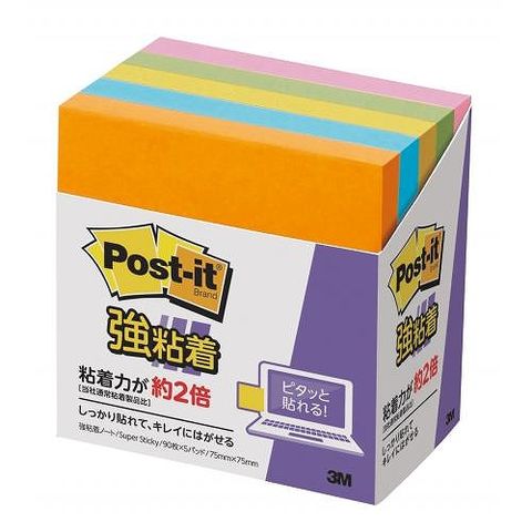 スリーエム(3M) ポストイット 強粘着ノート 多色アソート 75×75mm 654-5SSAN(66154)