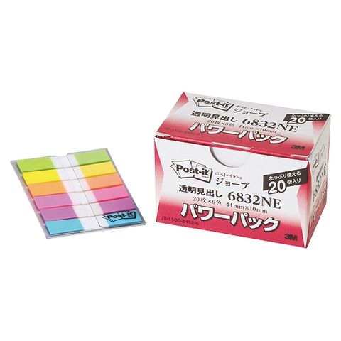 スリーエム(3M) ポストイット フィルム 透明スリム見出し 多色アソート 44×10mm パワーパック 6832NE(38385)