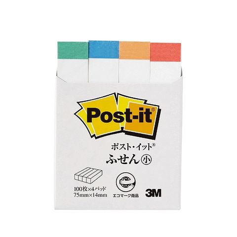 スリーエム(3M) ポストイット ふせん 再生紙 多色アソート 小 75×14mm 入数:1パック(4パッド) 560RP-R(37486)
