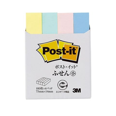 スリーエム(3M) ポストイット ふせん 再生紙 多色アソート 小 75×14mm 入数:1パック(4パッド) 560RP-K(37485)