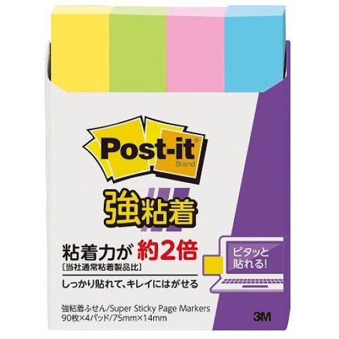 スリーエム(3M) ポストイット 強粘着ふせん 多色アソート 小 75×14mm 入数:1パック(4パッド) 560SS-NE(32037)