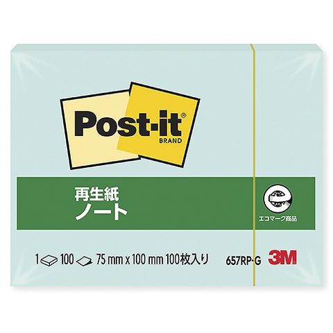 スリーエム(3M) ポストイット ノート 再生紙 グリーン 75×100mm 657RP-G(31474)