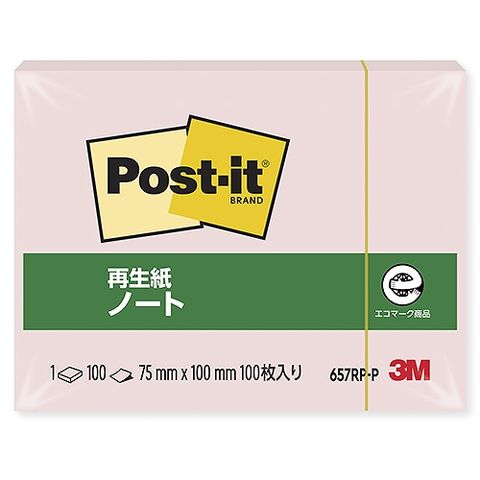 スリーエム(3M) ポストイット ノート 再生紙 ピンク 75×100mm 657RP-P(31472)