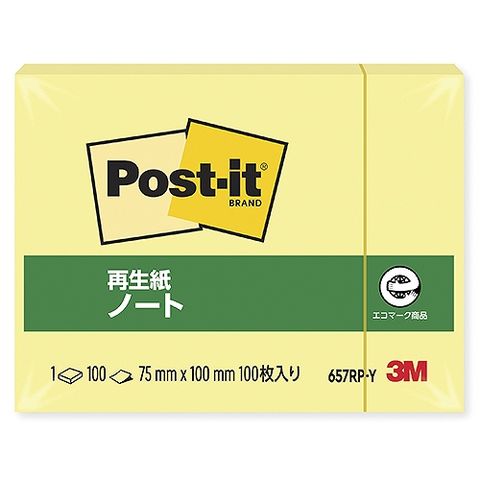 スリーエム(3M) ポストイット ノート 再生紙 イエロー 75×100mm 657RP-Y(31471)