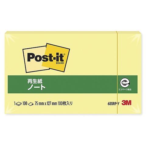 スリーエム(3M) ポストイット ノート 再生紙 イエロー 75×127mm 655RP-Y(31467)