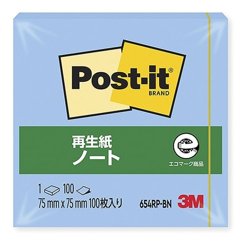 スリーエム(3M) ポストイット ノート 再生紙 ブルー 75×75mm 654RP-BN(31465)