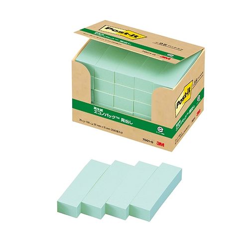 スリーエム(3M) ポストイット エコノパック 見出し 再生紙 グリーン 50×15mm 入数:1パック(25パッド) 7001-G(31431)