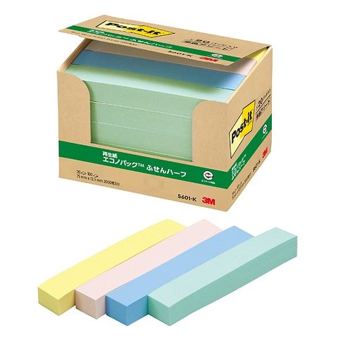スリーエム(3M) ポストイット エコノパック ふせんハーフ 再生紙 多色アソート 75×12.5mm 入数:1パック(20パッド) 5601-K(31425)