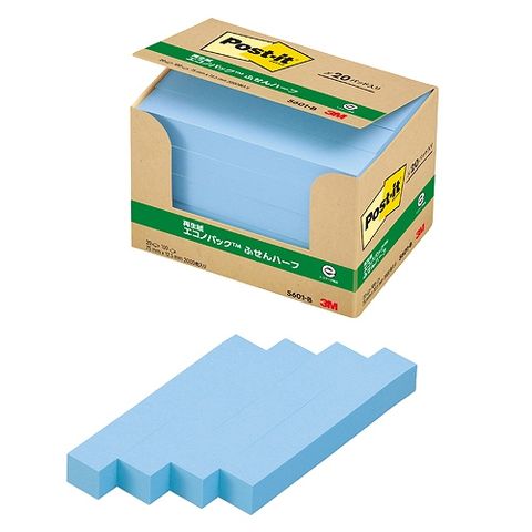 スリーエム(3M) ポストイット エコノパック ふせんハーフ 再生紙 ブルー 75×12.5mm 入数:1パック(20パッド) 5601-B(31419)
