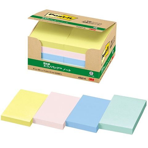 スリーエム(3M) ポストイット エコノパック ノート 再生紙 多色アソート 75×50mm 入数:1パック(10パッド) 6561-K(31409)
