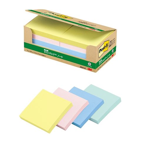 スリーエム(3M) ポストイット エコノパック ノート 再生紙 多色アソート 75×75mm 入数:1パック(10パッド) 6541-K(31404)