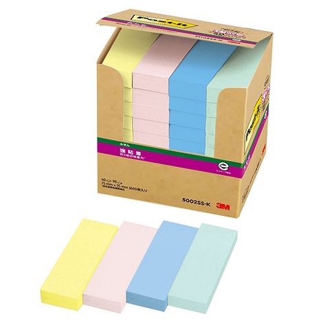 スリーエム(3M) ポストイット 強粘着ふせん 再生紙 多色アソート 75×25mm 入数:1パック(40パッド) 5002SS-K(23870)