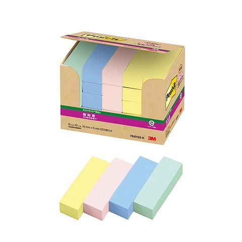 スリーエム(3M) ポストイット エコノパック 強粘着見出し 多色アソート 50×15mm 入数:1パック(25パッド) 7001SS-K(23859)