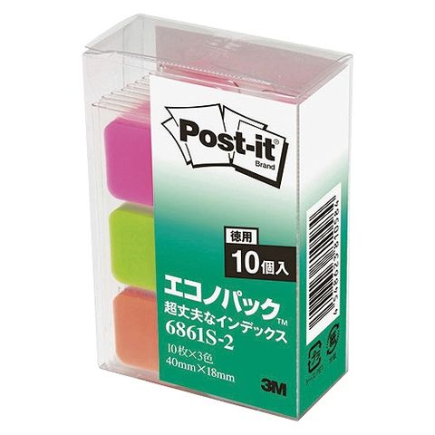 スリーエム(3M) ポストイット エコノパック フィルム 超丈夫なインデックス 多色アソート 40×18mm 6861S-2(14968)