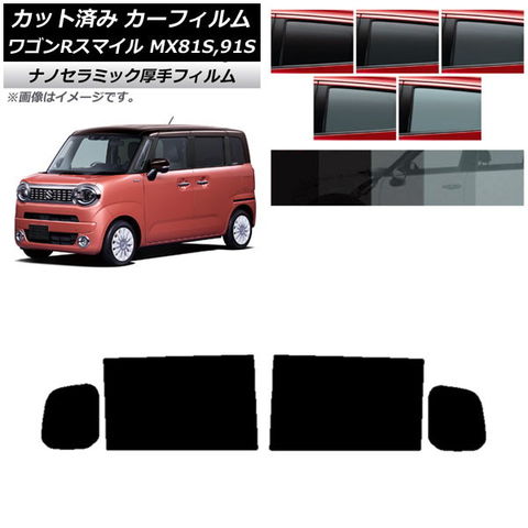 カーフィルム スズキ ワゴンRスマイル MX81S MX91S リア小窓アンテナ有 2021年9月~ リアドアセット 厚手 UV 高断熱 選べる5フィルムカラー AP-WF4N0156-RD
