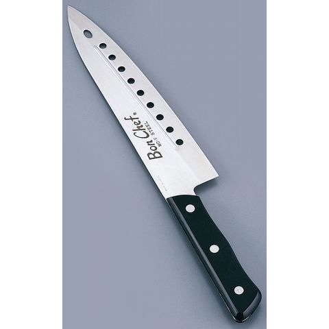 丸穴の空気孔と上部の凸部(リブ)により切ったものが包丁にくっつきにくいです。