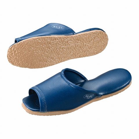 レザースリッパ スリッパ サンダル 病院 医院 ホテル 旅館 学校 来客用 客室 抗菌 前あき 紺 ネイビー