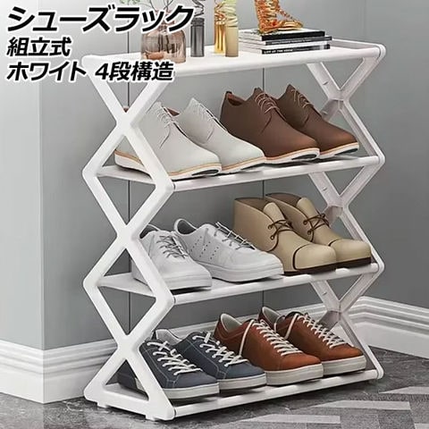 シューズラック ホワイト 4段構造 デザイン1 組立式 靴で散らかった玄関スペースをすっきり整頓 AP-UJ1114-WH
