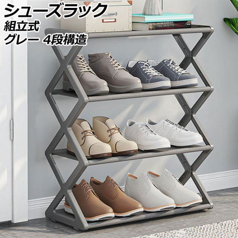 シューズボックス 下駄箱 靴入れ 靴箱 靴棚 靴ラック オーガナイザー 組立て 靴 クツ くつ シューズ 棚 たな ラック 収納 片付け 整理 整頓 インテリア 家具 プラスチック 金属 組み立て 組立 通気性 風通し 湿気 玄関 賃貸 一人暮らし ひとり暮らし 寮 部屋 キャビネット 箪笥 タンス クローゼット 押し入れ ワードローブ パントリー 物置き コンパクト スリム 薄型 省スペース 日用品 雑貨 灰 GRAY 4段