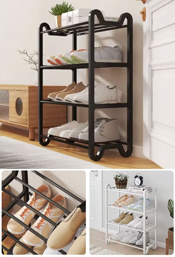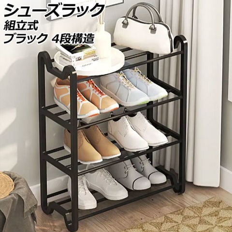 シューズラック ブラック 4段構造 デザイン4 組立式 靴で散らかった玄関スペースをすっきり整頓 AP-UJ1118-BK