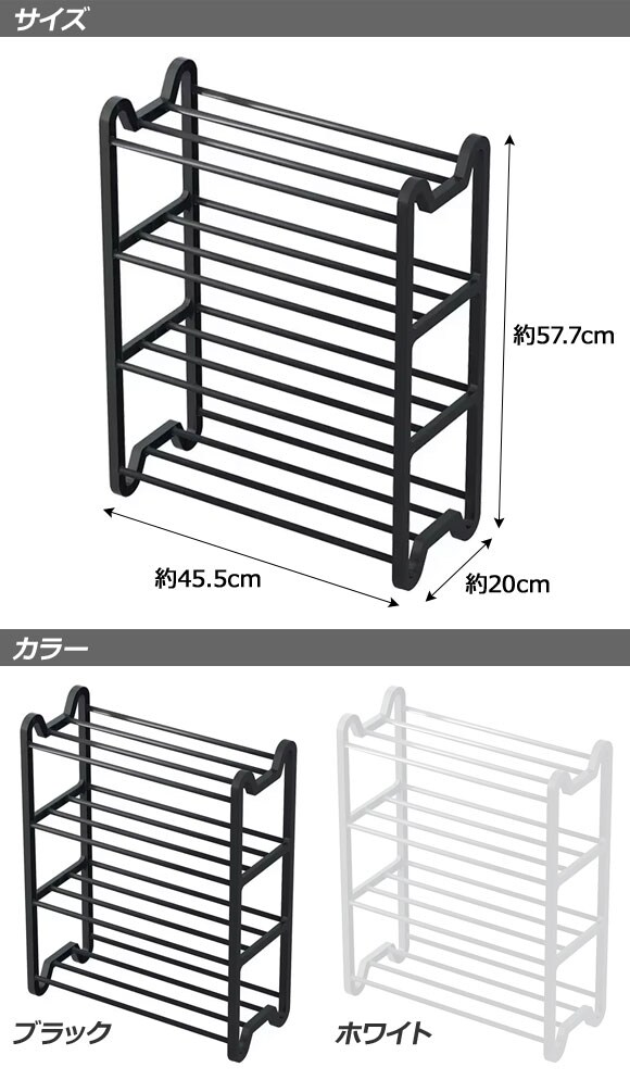 シューズボックス 下駄箱 靴入れ 靴箱 靴棚 靴ラック オーガナイザー 組立て 靴 クツ くつ シューズ 棚 たな ラック 収納 片付け 整理 整頓 インテリア 家具 プラスチック 金属 組み立て 組立 通気性 風通し 湿気 玄関 賃貸 一人暮らし ひとり暮らし 寮 部屋 キャビネット 箪笥 タンス クローゼット 押し入れ ワードローブ パントリー 物置き コンパクト スリム 薄型 省スペース 日用品 雑貨 黒 BLACK 4段