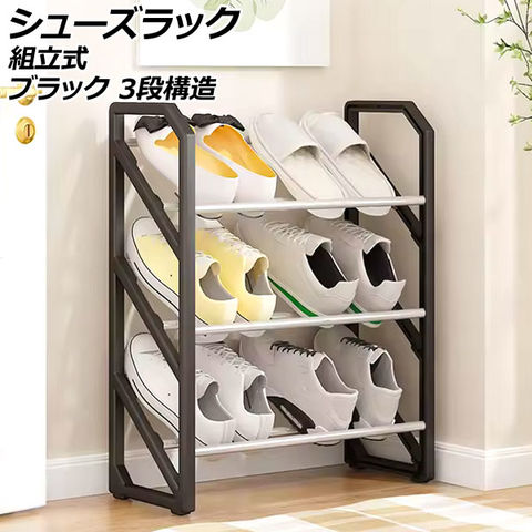 シューズラック ブラック 3段構造 組立式 靴で散らかった玄関スペースをすっきり整頓 AP-UJ1120-BK