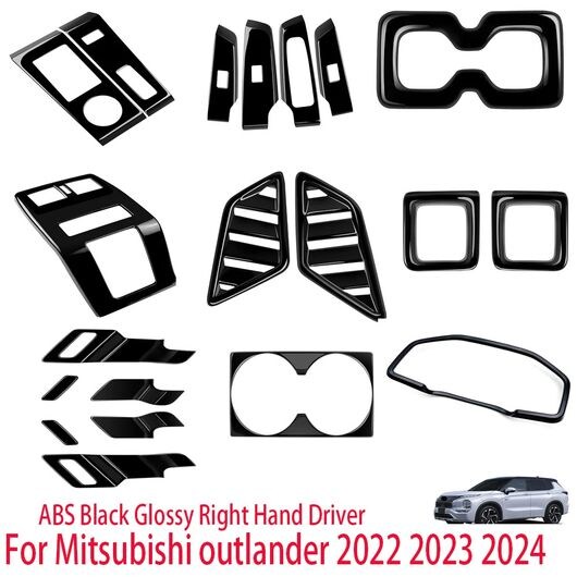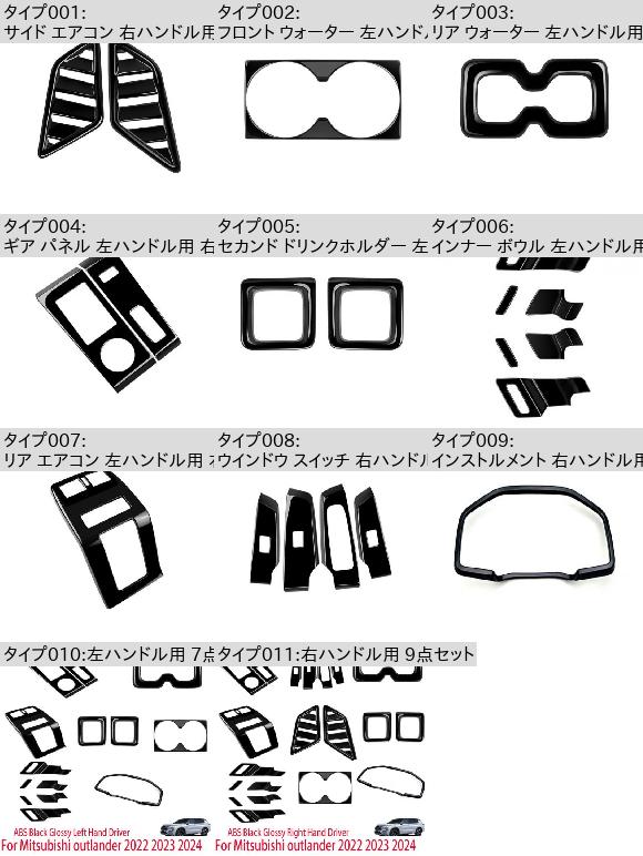 適用: 三菱 アウトランダー 2022 2023 2024 ABS ブラック 光沢 センター コンソール 装飾 カバー トリム ステッカー アクセサリー セカンド ドリンクホルダー 左ハンドル用 右ハンドル用 SR-AA-3468