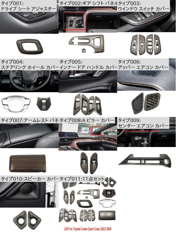 左ハンドル用 適用: トヨタ クラウン クロスオーバー 2023 2024 木目調 アクセサリー ギア シフト パネル ドア ボウル ステアリング ホイール カバー・スピーカー カバー SR-AA-3625
