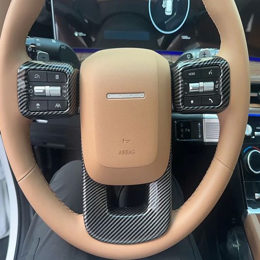 適用: ヒュンダイ/現代/HYUNDAI サンタフェ サンタフェ 2023 2024 ステアリング ホイール パネル カバー トリム ステッカー インテリア ABS カーボンファイバー・ABS ブラック SR-AA-3702