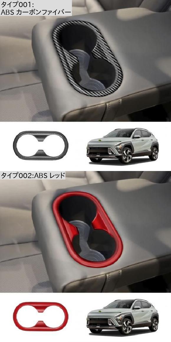 適用: ヒュンダイ/現代/HYUNDAI コナ 2024 2025 ABS カーボンファイバー セントラル コントロール ドリンクホルダー リアシート ABS カーボンファイバー・ABS レッド SR-AA-3783